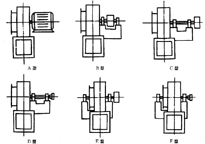 (1)、B型:皮帶輪在兩軸承中間,葉輪懸臂安裝。