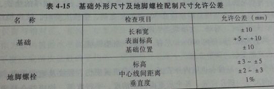 1.檢查基礎(chǔ)的外形尺寸,其公允公差見表4-15.